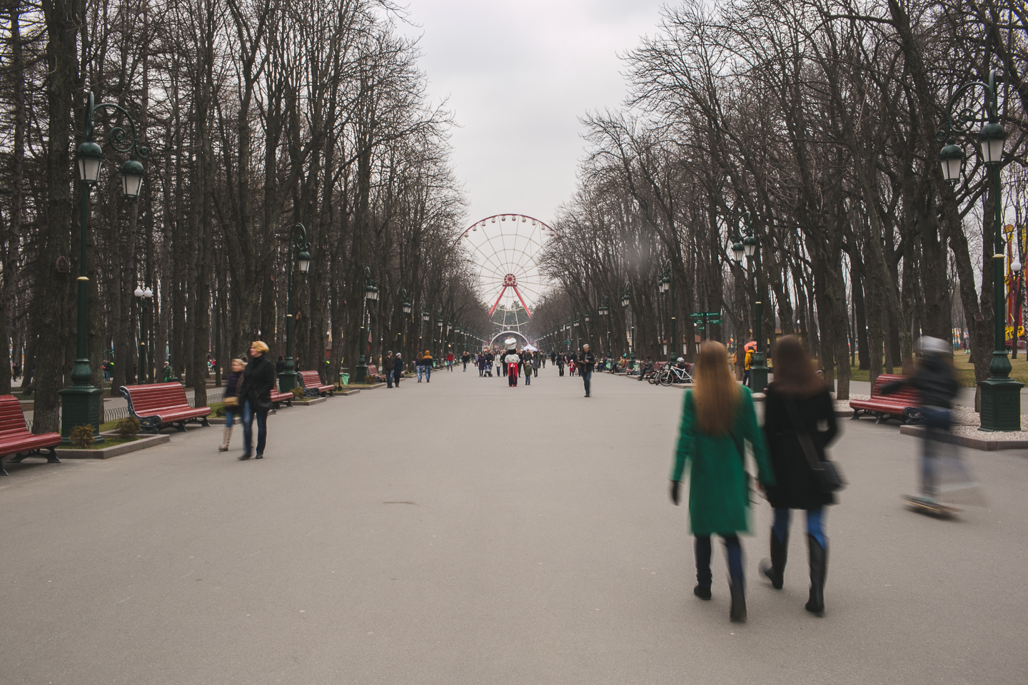 Покататься на канатной дороге (карта) и колесе обозрения (карта). Оба аттракциона находятся в парке Горького и позволяют посмотреть на Харьков с высоты голубиного почти птичьего полета. С 45-метрового колеса открывается прекрасный вид на Харьков. А детальнее рассмотреть город можно во время 18-ти минутной поездки на канатной дороге.