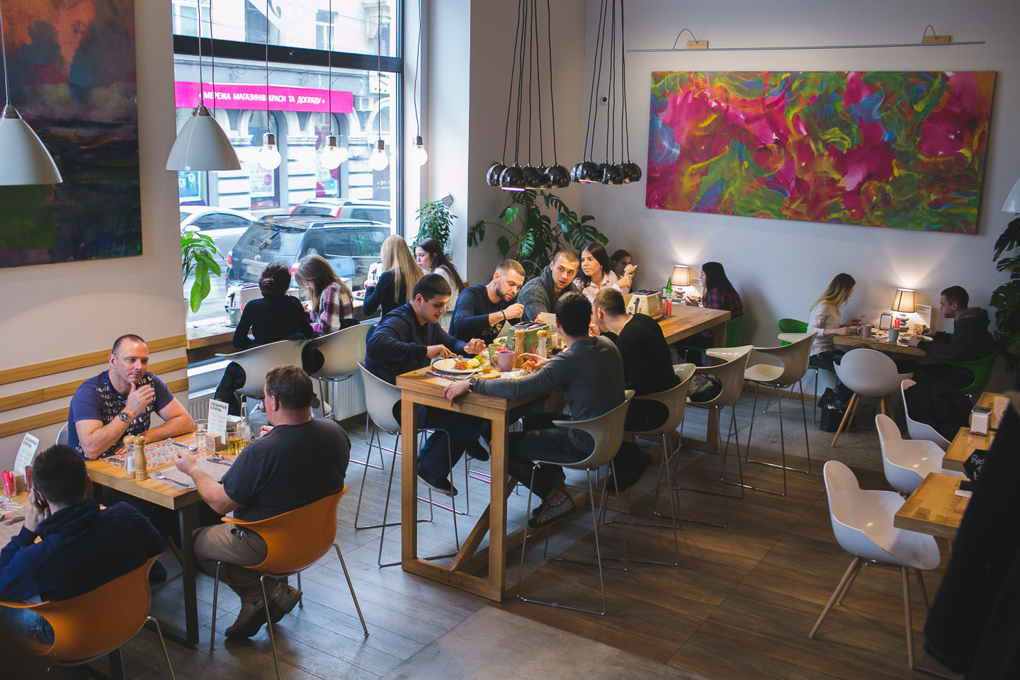 Можно занять столик где-нибудь в углу и, уплетая пирожное, рассматривать посетителей — в основном, харьковскую обеспеченную молодежь и прочих хипстеров.